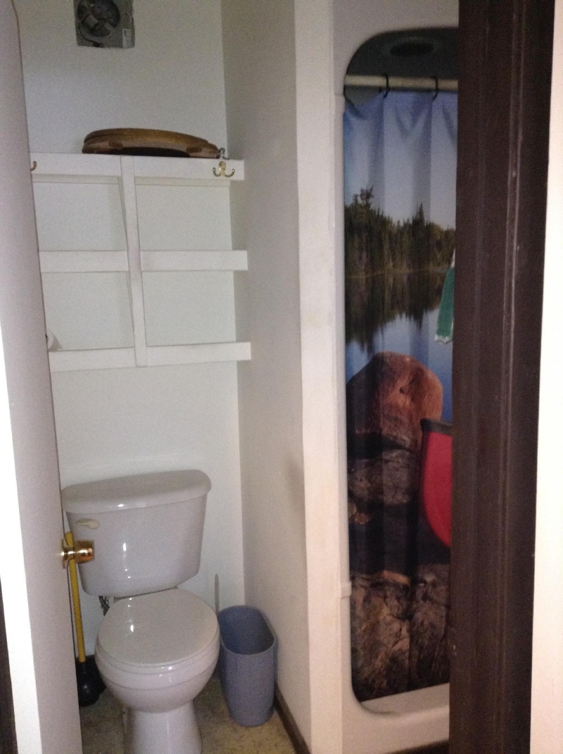 Washroom: The washroom has sink, toilet and shower.